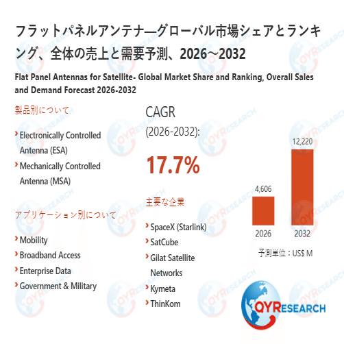 上記の図表/データは、QYResearchの最新レポート「フラットパネルアンテナ―グローバル市場シェアとランキング、全体の売上と需要予測、2026~2032」から引用されている。