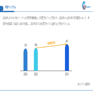 00002図. ギ酸ナトリウム世界総市場規模、2031年までに451百万米ドルに達すると予測されている