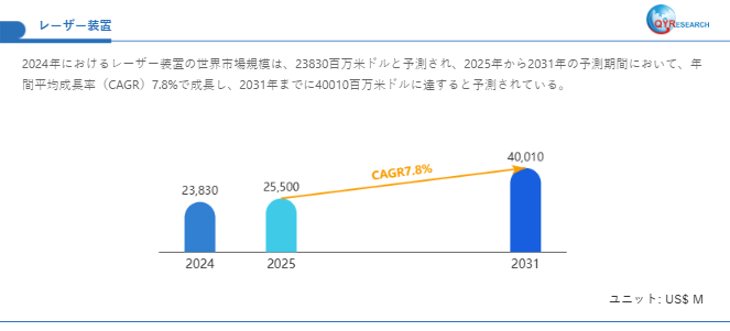 レーザー装置市場規模予測:2031年には40010百万米ドルに到達へ