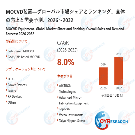 本記事は、QY Research発行のレポート「MOCVD装置―グローバル市場シェアとランキング、全体の売上と需要予測、2026~2032」に基づき、市場動向および競合分析の概要を解説します。