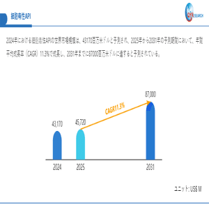 QYResearch調査チームの最新レポート「細胞毒性API―グローバル市場シェアとランキング、全体の売上と需要予測、2025~2031」によると、細胞毒性APIの世界市場は、2024年に約43170百万米ドルと推定されており、2025年には45720百万米ドルに達する見通しです。今後は、2025年から2031年にかけて年平均成長率(CAGR)11.3%で成長し、2031年には約87000百万米ドル規模に拡大すると予測されています。